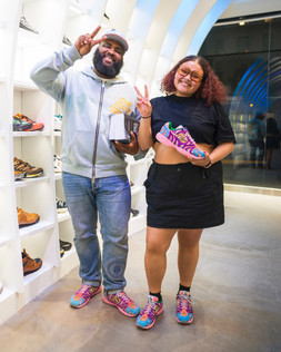 I went in and walked into the coolest environment ever. The air was fresh, the colors were bright and vibrant, the family was in the space. I was personally assisted by Jae Tips mom which made my experience worth my while. Jae had stepped out the second I got there, he did welcome me in though. I got to sit and try on my sneakers as they didnt have 6.5 or a 7 in stock but I grabbed the 7.5 with zero hesitation. Being able to grab this sneaker WEEKS in advance before the world got access had me HYPE.
